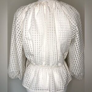 Levis Womens Boho Wrap Top Blouse 3/4 balloon Sleeve Tie Waist size Small Sheer