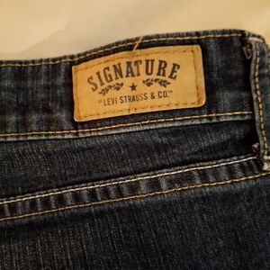 Levi's women's distressed denim shorts in a timeless blue with embroidered back pockets and rolled cuffs. Perfect for everyday wear. Durable and stylish. Size 12. waist side to side measures 18 inches. Length 15 inches.