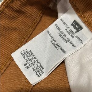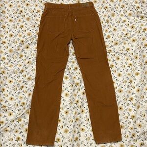Chic straight leg corduroy jeans in a warm tan shade. Perfect for casual outings. Elevate your style with Levi’s.