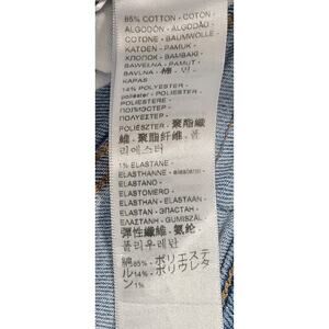 These Women's Levi's are medium wash, distressed high rise mom jeans. Featuring 85% cotton, 14% polyester, and 1% elastane, these jeans are highly durable with a bit of stretch for comfort. Machine wash cold and tumble dry medium.