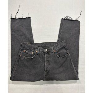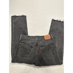 Levis Womens Cropped Black Jeans Size W31/L26 Distressed Hem Button fly