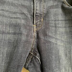 Levi's Womens Dark Wash Whiskered Stretch Mid Rise Curvy Bootcut Jeans Size 33. NOTE: minor puckering, see photos. Measurements Waist: 34" Inseam: 31" Rise: 10" Offers always welcome! Measurements are approximations taken while hanging