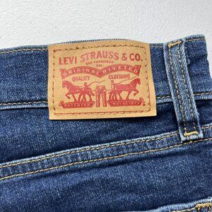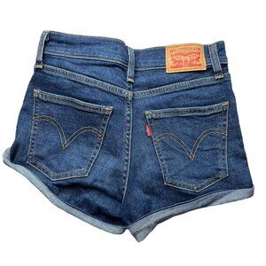 Levi's Women's Denim Shorts feature a mid-rise design with rolled cuffs, offering style and comfort. Made of cotton, spandex, and polyester blend for durability and flexibility. Size 24 waist.