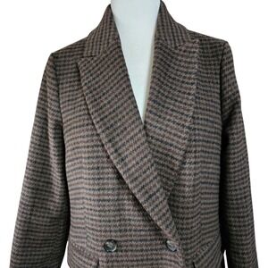 Levi's Womens Double Breasted Blazer Coat Sz S Tea Length Long Brown Houndstooth