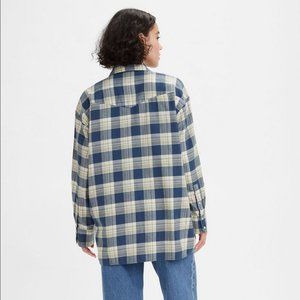 Levi's Women's Dylan Oversized Western Shirt in Kelsey Plaid Sargasso Sea NWT