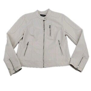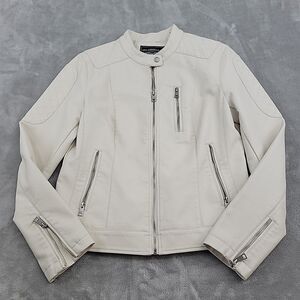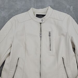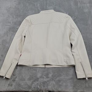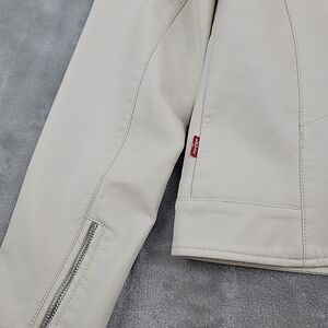Levis Womens Faux Leather Off White Jacket Size M Zippers Pockets Lining Nice