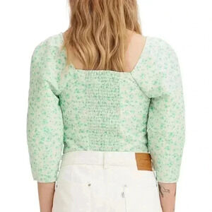 Levi’s Women’s Floral Puff Sleeve Smocked Back Yvie Blouse Size Large NWT