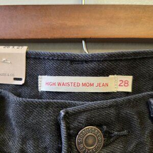 Levis Womens Grunge Emo High-Waisted Ribcage Ripped Mom Jeans Washed Black Size 28W