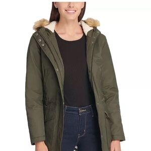 Cozy up in this faux fur-trimmed coat from Levi's®, with an attached hood to keep you warm and dry.