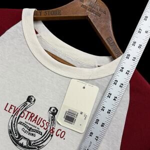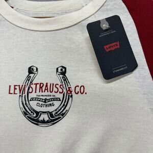 Keywords: Levi’s top baseball tee raglan vintage graphic horseshoe logo red white cotton casual classic streetwear