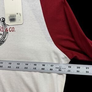 Levi’s Womens Horseshoe Logo Baseball Tee White Red Raglan 3/4 Sleeve Sz S