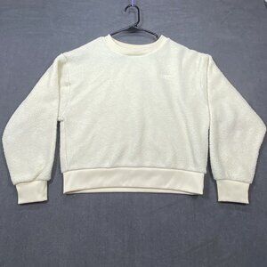 Levis Womens Ivory Sherpa Fleece Crewneck Pullover Cropped Sweatshirt Size XS