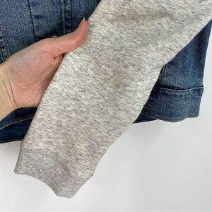 Hoodie, cotton sleeves and hoodie. Denim body. Button closing