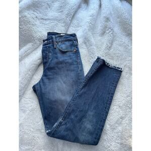 Levis Womens Jeans 25 White Oak Cone Denim Button Fly Raw Hem