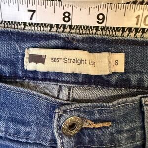 Levi's 505, womens jeans, blue denim, straight leg jeans, stretch denim, size 8, classic fit jeans, regular fit, casual denim, everyday wear, vintage style, comfortable fit, versatile jeans, medium wash denim, flattering jeans, timeless style, levis stretch, modern casual denim, fashion jeans, straight cut jeans