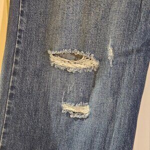 🧵 Condition: Good pre-owned condition with intentional heavy distressing on both legs — please note: the left leg hole has torn open further than the original design, giving it a more rugged, worn-in look.