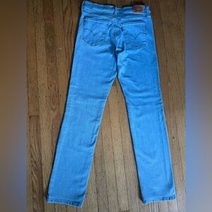 Chic Levi's skinny jeans in light blue. Perfect for casual wear. Flattering and versatile.