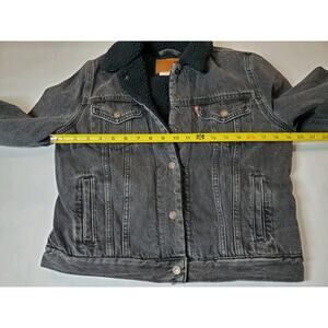Levi's Women's Medium Sherpa Lined Tucker Jacket Black Cropped Premium