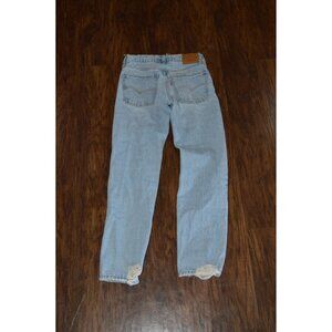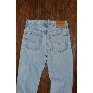 Levis Women's Middy Straight Jeans Sz 24 Light Wash Mid Rise Distressed Denim