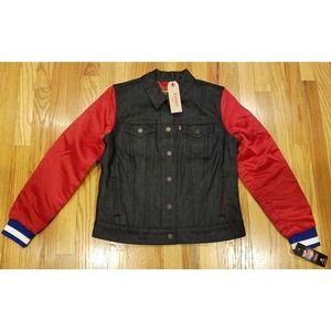Levis Womens New York Giants Varsity Denim Jacket Blue/Red Size XXL