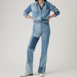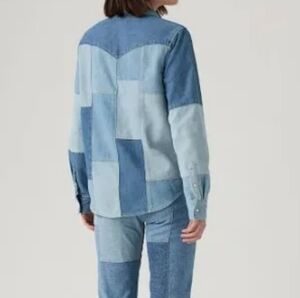 Levi's Women's Patchwork iconic western button-up Denim Shirt Denim On Denim Blue nwt