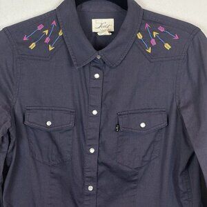 Levis Women's Pearl Snap Embroidered Blue Southwestern Blouse SZ Medium Cowgirl