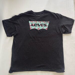 Levi’s Pink Flamingo Graphic T-Shirt in classic black. Features a fun pink flamingo design on the front, soft crewneck style, and relaxed unisex fit. Tagged size XL. Gently worn and in great condition with no stains or holes. Perfect for casual, everyday wear with jeans, shorts, or layered under a jacket.