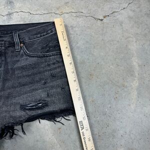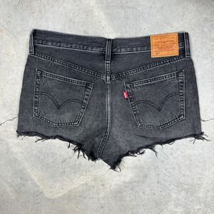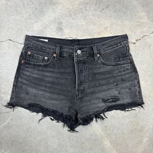 Levis Womens Premium 501 Original Shorts Black Denim Cut Off 32 Waist Distressed
