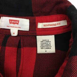 Levi's Women's Red Black Flannel Shirt Boyfriend Fit Button Front Long Sleeves M