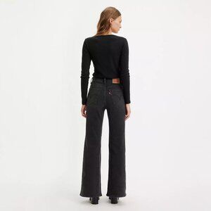 Levi's Women's Ribcage Bell Bottom Jeans Black Charcoal Wash Super High Rise Flare Leg Denim Slim Waist Vintage Fit