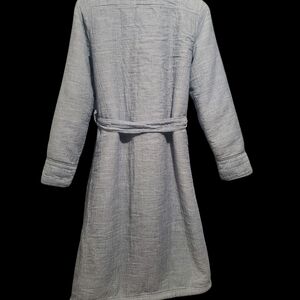 Cozy and stylish women's robe featuring a striped blue and white design. Perfect for lounging and it super extra