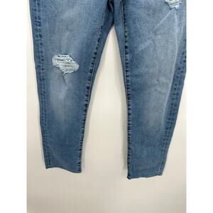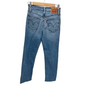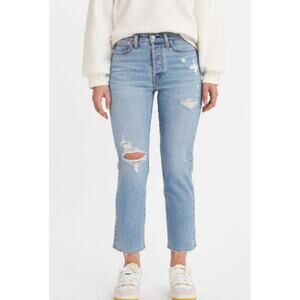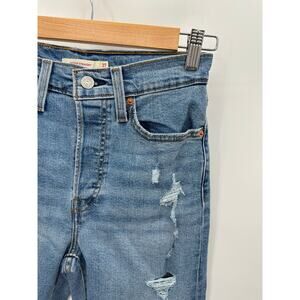 Levi's Womens Size 27 Medium Indigo Wash Wedgie Straight Jeans Cropped Distress