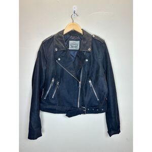 Levi's Women's Size Large Navy Faux Leather Biker Jacket Street Coat EUC
