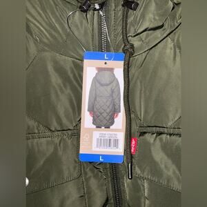 Levi's Women's Soft Sherpa Lined Diamond Quilted Long Parka Green Jacket NWT