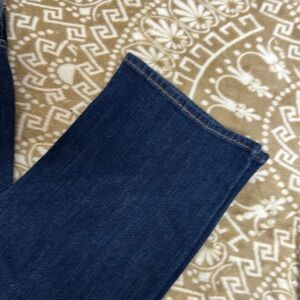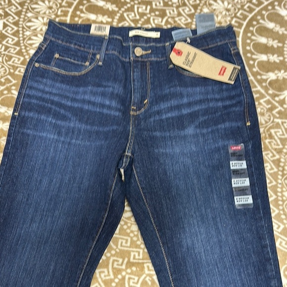 Classic straight leg jeans by Levi's. Dark blue denim with contrast stitching. Timeless style and comfortable fit.