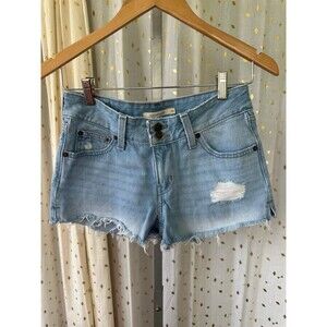 Levi's Women's Superlow 5 Pocket Light Wash Distressed Raw Hem Denim Shorts 26