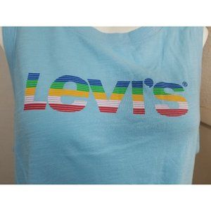 Levi's Womens Top Baby Tee Blue Sleeveless Logo-Print Cotton Cropped Size Large New