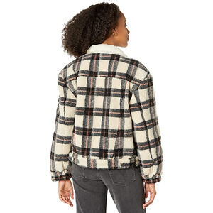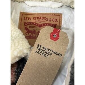 Levi's Womens Trucker Jacket Ex-Boyfriend All Over Sherpa Plaid Beige Size S NWT
