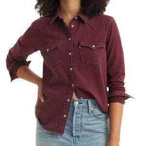 Levi's Women's Ultimate Western Cowgirl Pearl Snap Shirt Windsor Wine Size XS