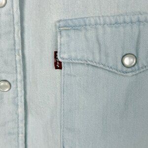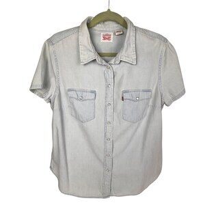 Levi's Women's Vintage Denim Short-Sleeve Western Pearl Snap-Front Shirt, Size XL. 100% cotton. Nice condition with no stains or holes. Smoke-fee/pet-friendly home.