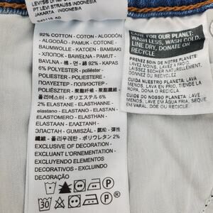 Pre-Owned Levis Womens W32 High Rise Daisy Duke Cut Off Distressed Shorts Blue. Approximate measurements, waist 34in, rise 12in, inseam 2in.