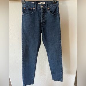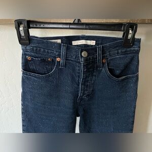 Beautiful women’s Levi’s high rise dark wash Wedgie jeans, size 24. These jeans have a super unique wash (spotted detail) & are perfect for everyday wear. Structured/Rigid style, reminds me of 90’s jeans.