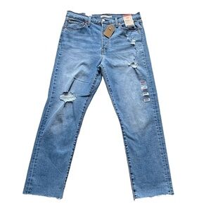 Levi’s Women’s Wedgie High Waist Straight Leg Jeans Size 32 Button Fly Raw Hem