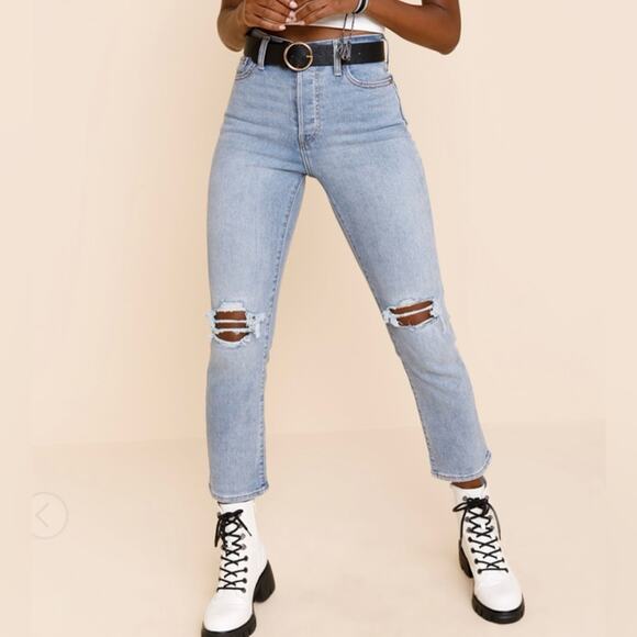 Levi's Women's Wedgie Straight Fit Distressed Knee Jeans Light Wash Size 30