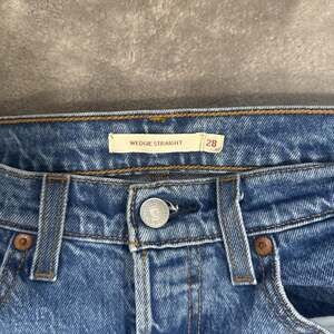These Levi's Women's Wedgie Straight Jeans in a classic blue wash are a wardrobe staple. Featuring a button fly and a flattering high-waisted, straight-leg fit, these jeans are designed to highlight your curves and elevate your everyday style. The tag clearly indicates they are "Wedgie Straight" in size 28. Perfect for casual outfits, these jeans offer both comfort and enduring style. Excellent pre-owned condition with no significant flaws. Waist measures approximately 15.5 inches across when laid flat. Inseam approximately 27 inches.