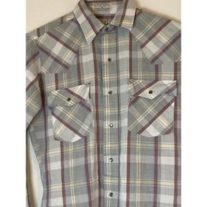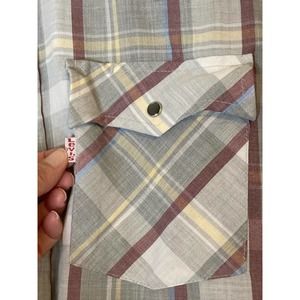 Levi's Womens Western Button-Down Shirt Long Sleeves Gray Plaid‎