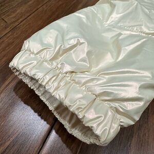Levis Women's XL Shinny Ivory Puffer Jacket Sherpa Lined Hooded Genuine Red Tab