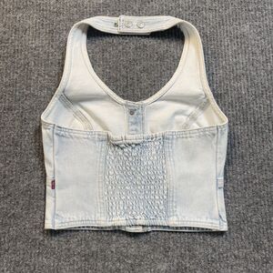 Levis Women's Size XS Button Down Denim Slim Fit Halter Top Janeesah Light Wash NEW.
