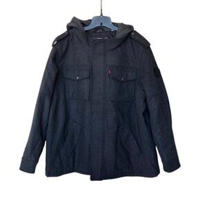 Levi's Wool Blend Hooded Military Jacket Men's 2XL Charcoal NWT NEW