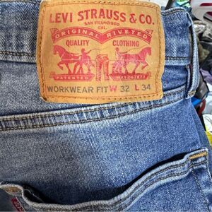 Gently worn Levi's workwear 32x34 straight leg medium wash jeans. Please review all photos for any signs of wear-pictured as is. Disclaimer: Any items with any wear/staining has not been treated, and unsure of ability to remove/treat condition. Comes from a smoke free home, bundle with other items to save & minimize shipping cost.